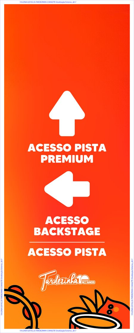 | 888 | Lona | CAVALETE Sinalização Externa alt 3 | 1 | 0,910m x 2,350m 2,14 m² |